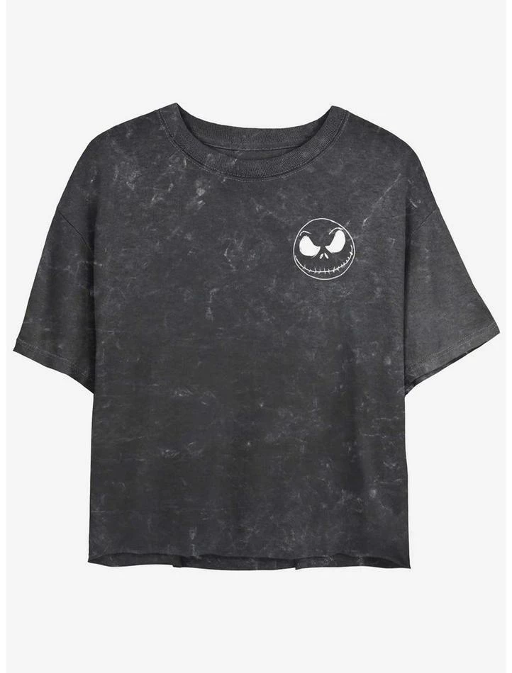 Brand new 👍 Disney The Nightmare Before 🎅 Christmas Jack Skellington Pocket Mineral Wash 👧 Girls Crop T-Shirt 🔥