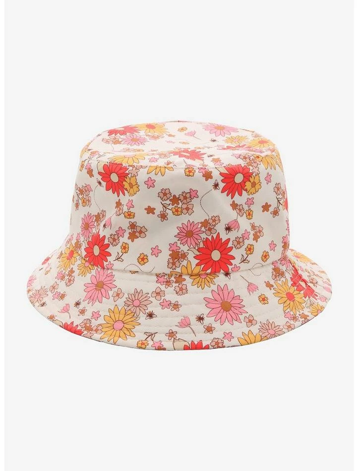 Protect yourself from the sun in style as you pick flowers with Pooh in the Hundred Acre Wood. This Winnie the Pooh bucket hat features an allover print of orange flowers and honey bees, with an embroidered image of Pooh holding strawberries in the center.