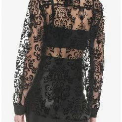 New ✨ Her Universe Disney The Haunted Mansion Wallpaper Flocked 👧 Girls Long-Sleeve Mesh Top 😉
