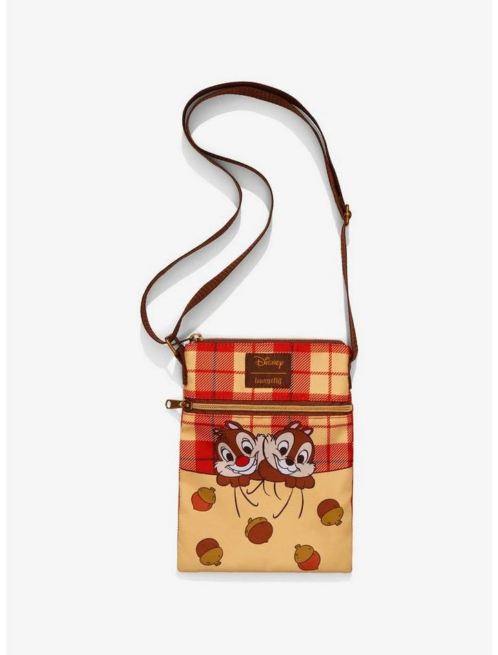 Cheap π Loungefly Disney Chip ‘N’ Dale Acorn Plaid Passport Crossbody Bag π