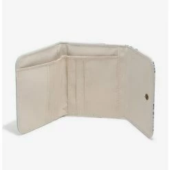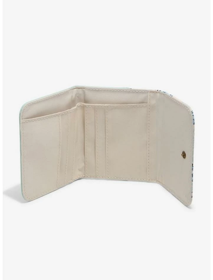 Heading out for a trip with your ohana? Keep your cards and cash in place with this mini wallet! Featuring an allover print of Stitch in different poses and a tropical leaf background. Comes with a billfold and 6 card slots, with a snap button closure.