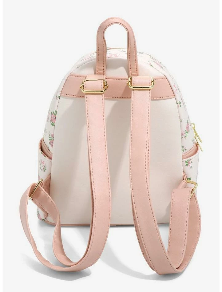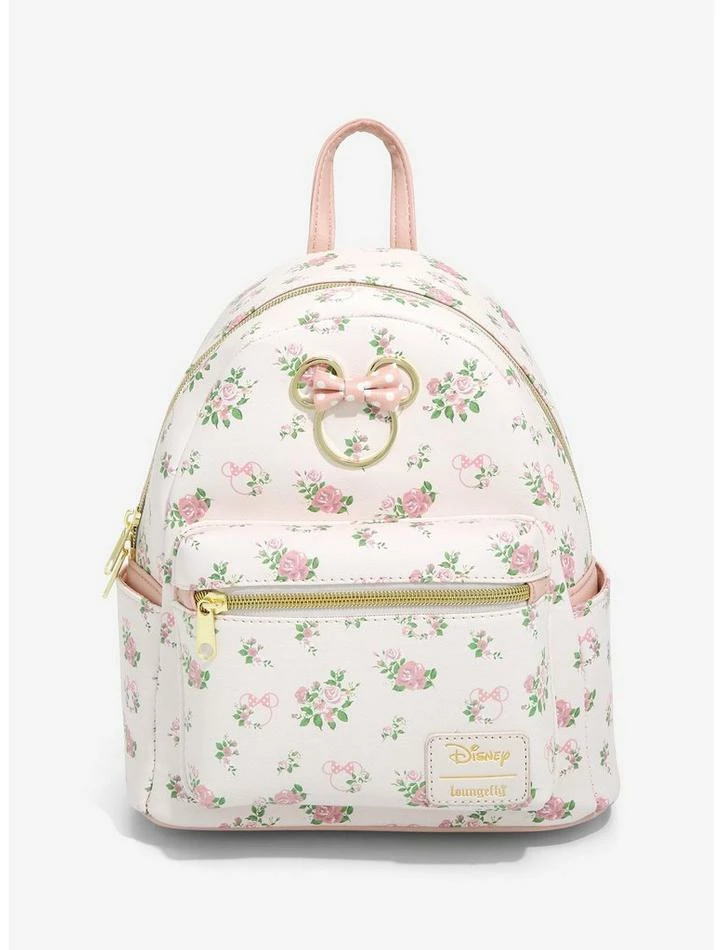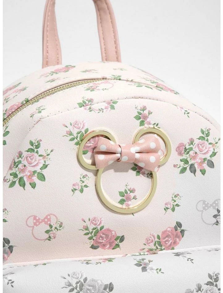 Our outfit is about to be in full bloom, thanks to this mini backpack! Add some dainty Disney vibes to your backpack collection with this pastel pink number, featuring an allover toss of roses and Minnie Mouse heads, and a gold-tone embossed Minnie Mouse at the center with polka dot bow detail. Comes with side pockets, front zipper pocket and interior drop pocket.