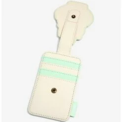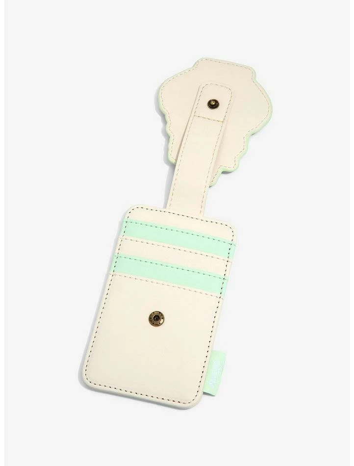 Make a splash while keeping your cards safe and sound with this cardholder from The Little Mermaid! Straight from Ariel’s gadgets and gizmos collection, this vertical cardholder features a button strap with an illustration of Ariel and a mint-colored shell underneath, plus a view of the sea on the back! Comes with 4 card slots and a clear ID slot on the back.