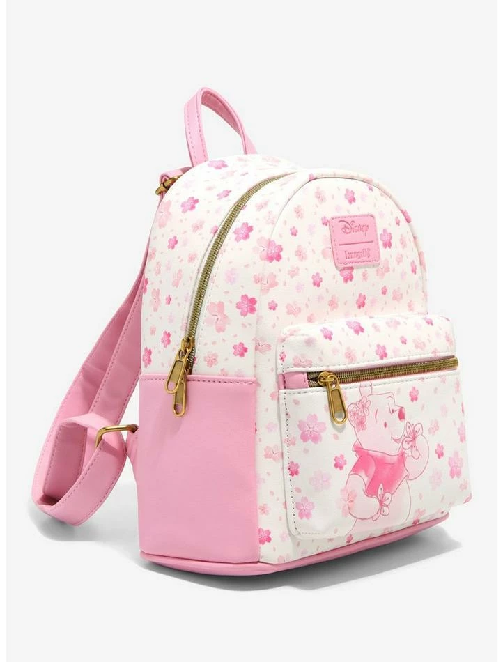 Β A new mini backpack is in bloom! This one from Loungefly and Disney features an image of Winnie the Pooh surrounded by cherry blossoms. Inside has a drop pocket. Zipper closure and adjustable straps.