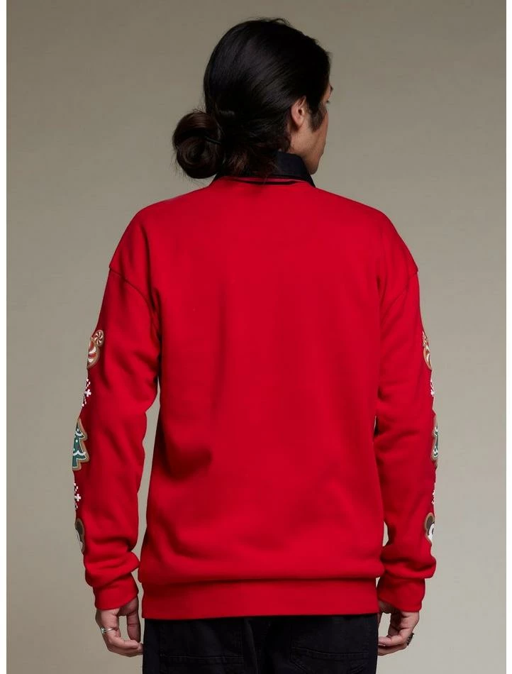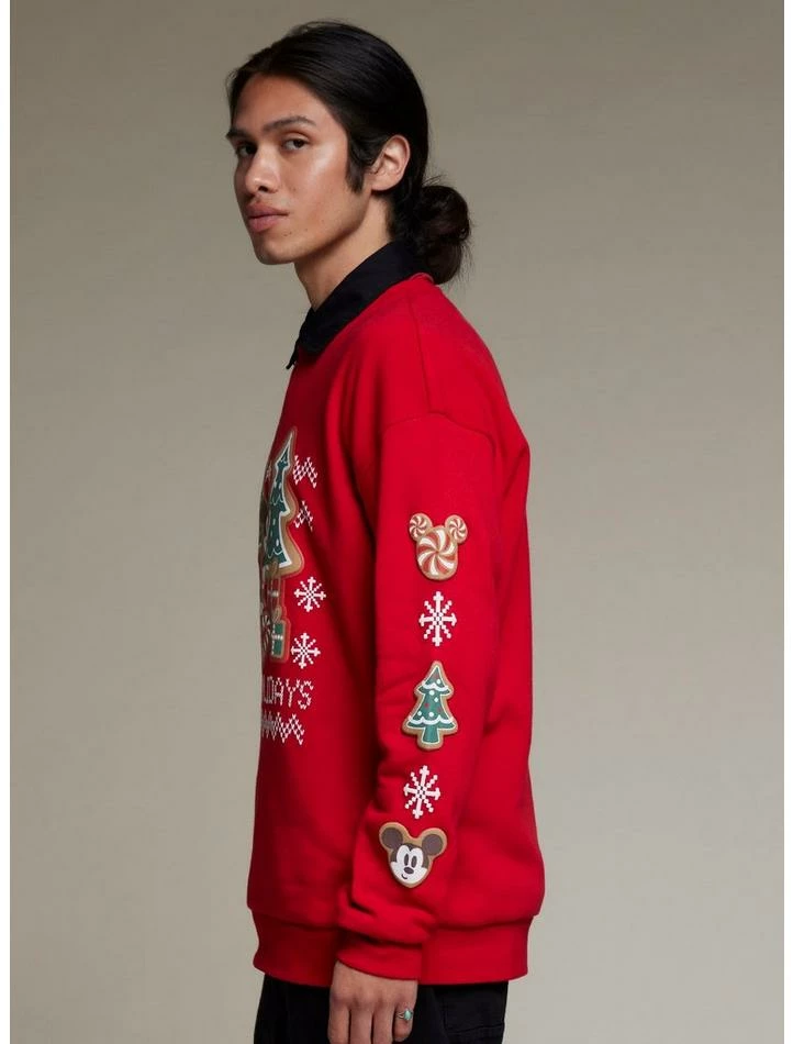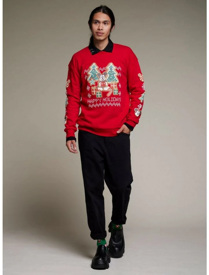 We’re baking up something jolly for your wardrobe! Mickey Mouse is here to protect you from the frosty weather with something sweet and warm. This crewneck sweatshirt features a gingerbread cookie Mickey Mouse surrounded by other holiday icon cookies on the front and down the sleeves, all on a puffed print! “Happy holidays” and other festive designs are the white icing on top in a Fair Isle-inspired design in the background.