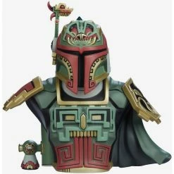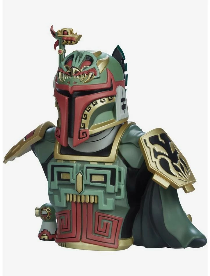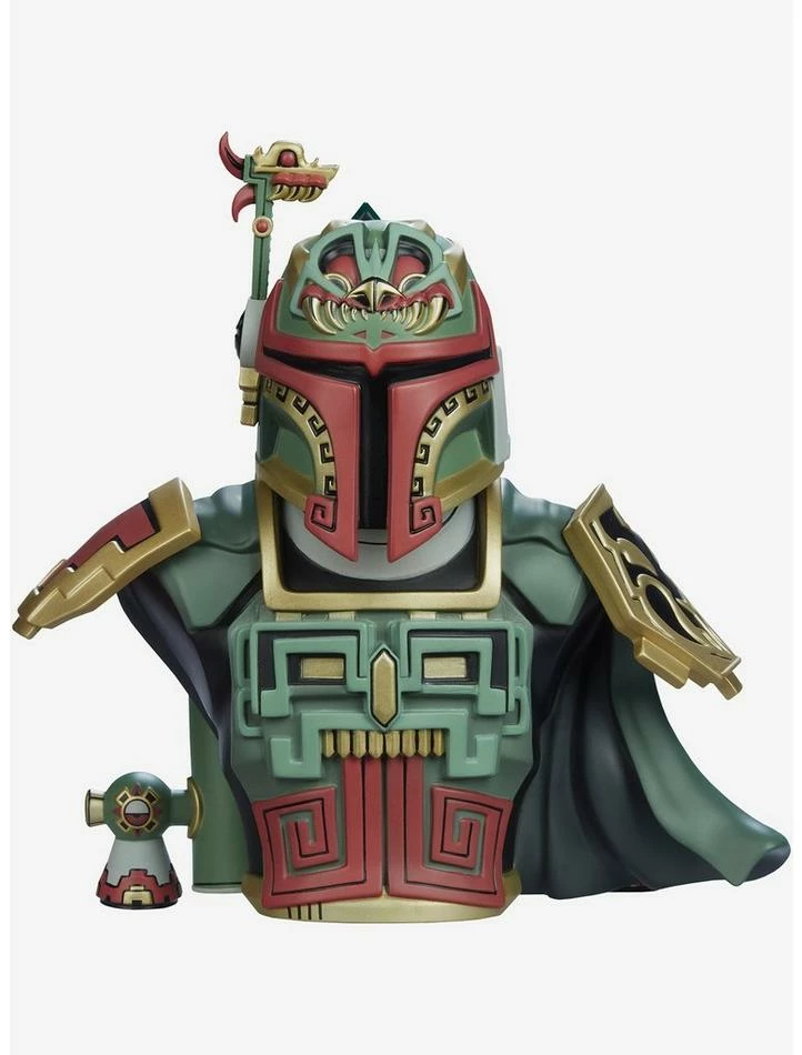 Urban Aztec infiltrates a galaxy far, far away with the Boba Fett Bust by artist Jesse Hernandez, blending Maya and Mandalorian influences into one badass bounty hunter.Β