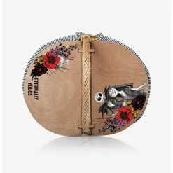 A romantic picnic for 2 gets a spooky-beautiful Disney twist with the Nightmare Before Christmas Jack and Sally Country Picnic Basket. This small wicker double lid picnic basket is perfect for the cemetery – or the park. Features include a lovely handwoven-willow body, a sturdy grab-and-go handle, a washable poly/cotton liner, and a wooden split-lid for dual entry that can also be used as a level surface for cups and plates. This picnic basket showcases a stylish vintage sensibility with a classic shape and a floral Jack and Sally Eternally Yours design.