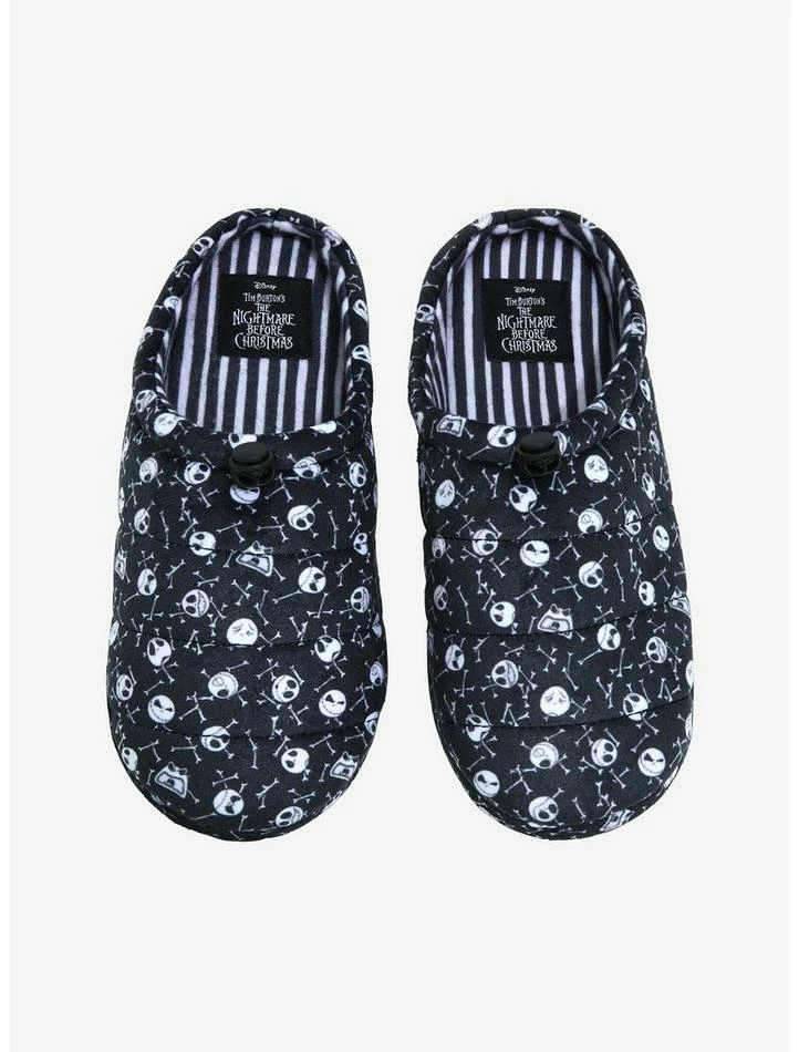Get cozy rocking your Halloween Town best in these The Nightmare Before Christmas slippers, featuring an allover print of bones and Jack making various faces.