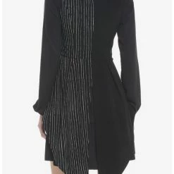 Dress to impress like the Master of Fright with this bone-chilling vest! It features a hi-low peplum hem and a split black and pinstripe pattern, plus Jack Skellington’s face, bats and filigree embroidered on the collar. Complete with a triple buckle closure on the front.