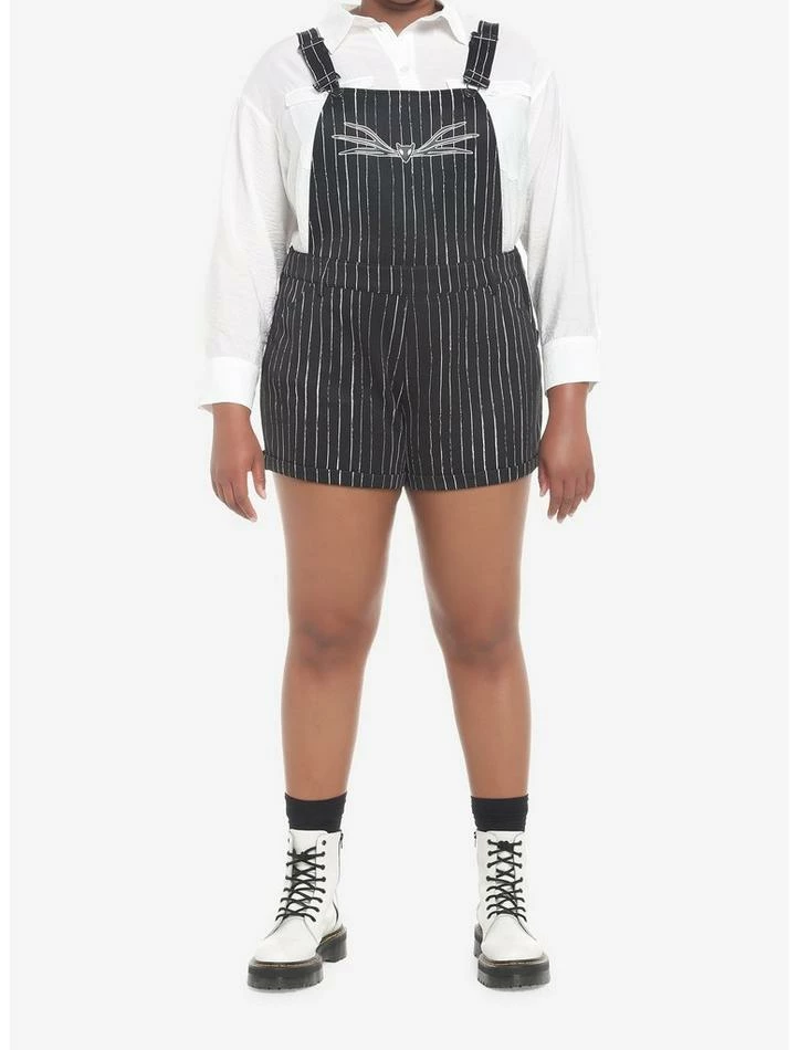 Coupon 🥰 The Nightmare Before ❄ Christmas Jack Pinstripe Shortalls Plus Size 🥰