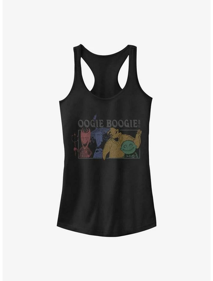 Make way for Oogie Boogie and Co.! This black racerback tank — inspired by The Nightmare Before Christmas — features the infamous boogeyman himself along with trick-or-treating trio Lock, Shock and Barrel.