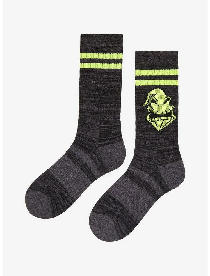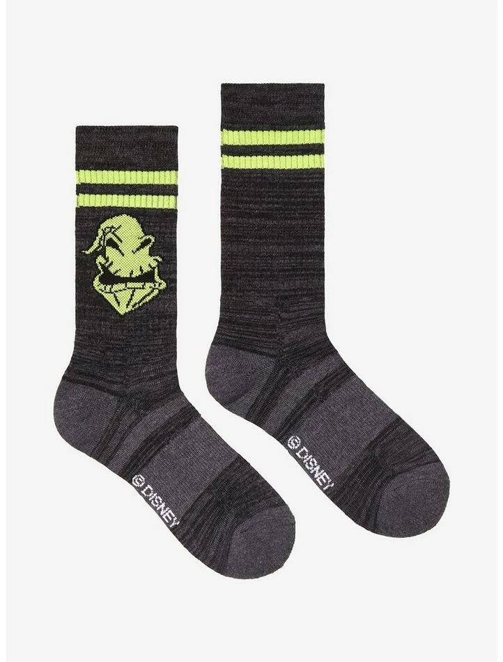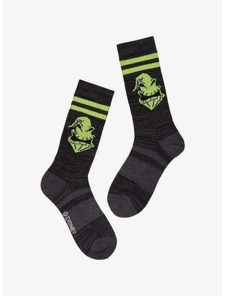 Step into Halloween Town with some Oogie Boogie flair! This pair of crew socks feature Oogie’s face and varsity stripes at the top. The best part? They glow in the dark!