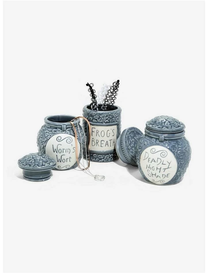 Mix up a deadly bowl of soup the Sally way! A set of three trinket boxes fromΒ The Nightmare Before ChristmasΒ are shaped like the jars from Dr. Finkelstein’s kitchen in. Have fun sneaking out to visit Jack Skellington!