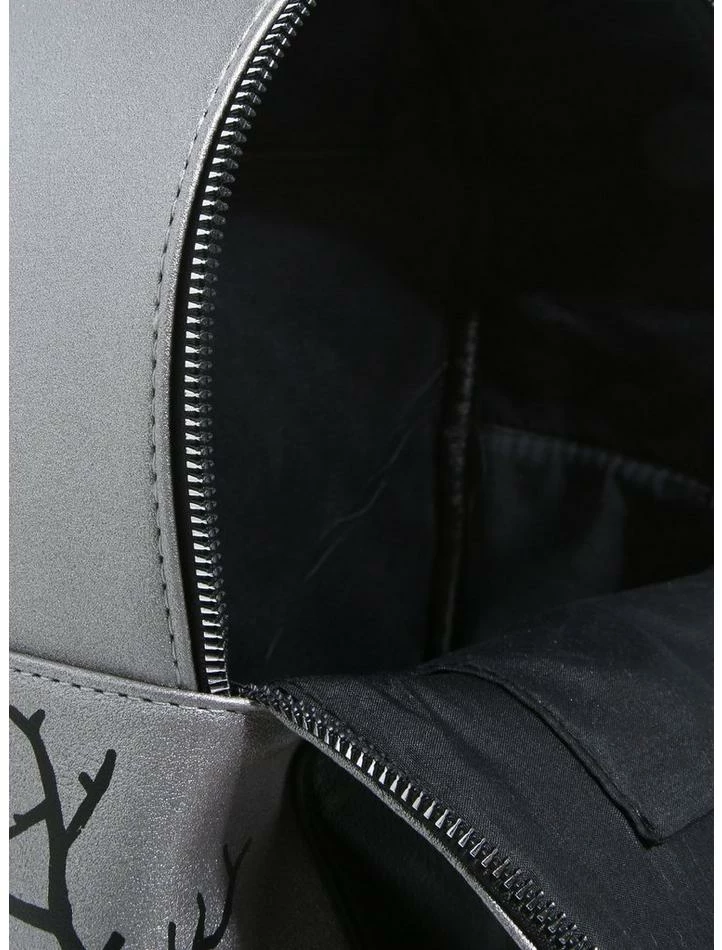 Trust Zero to guide you home on the darkest nights, and to protect your belongings with this mini backpack! Fromย The Nightmare Before Christmas, your favorite ghost dog comes to life as a mini coin pouch connected to the backpack on a silver tone chain. The backpack resembles Zero’s tombstone, with his name printed on top and the signature skull door doubling as a front pocket! Interior pockets, adjustable straps and top carrying handle.