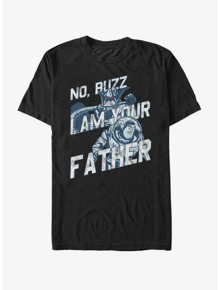 Everyone at Star Command is talking about the Toy Story Zurg Buzz I am Your Father Black T-Shirt! A distressed print reads “No, Buzz I Am Your Father” next to Emperor Zurg and Buzz Lightyear on the front of this funny Toy Story T-shirt. 100% Cotton.
